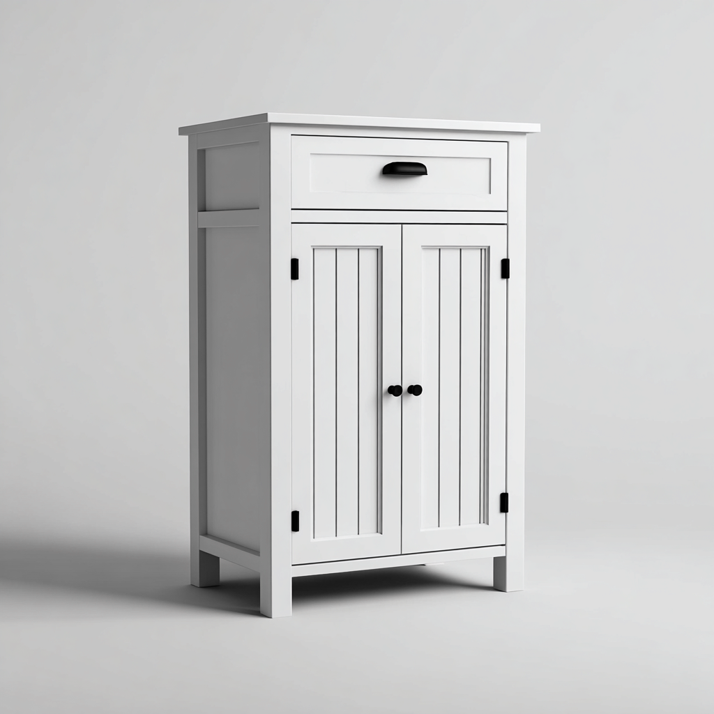 Este armario de cocina de estilo clásico ofrece una solución práctica para organizar utensilios y accesorios de uso diario. Su diseño compacto permite integrarlo fácilmente en cocinas de diferentes tamaños.