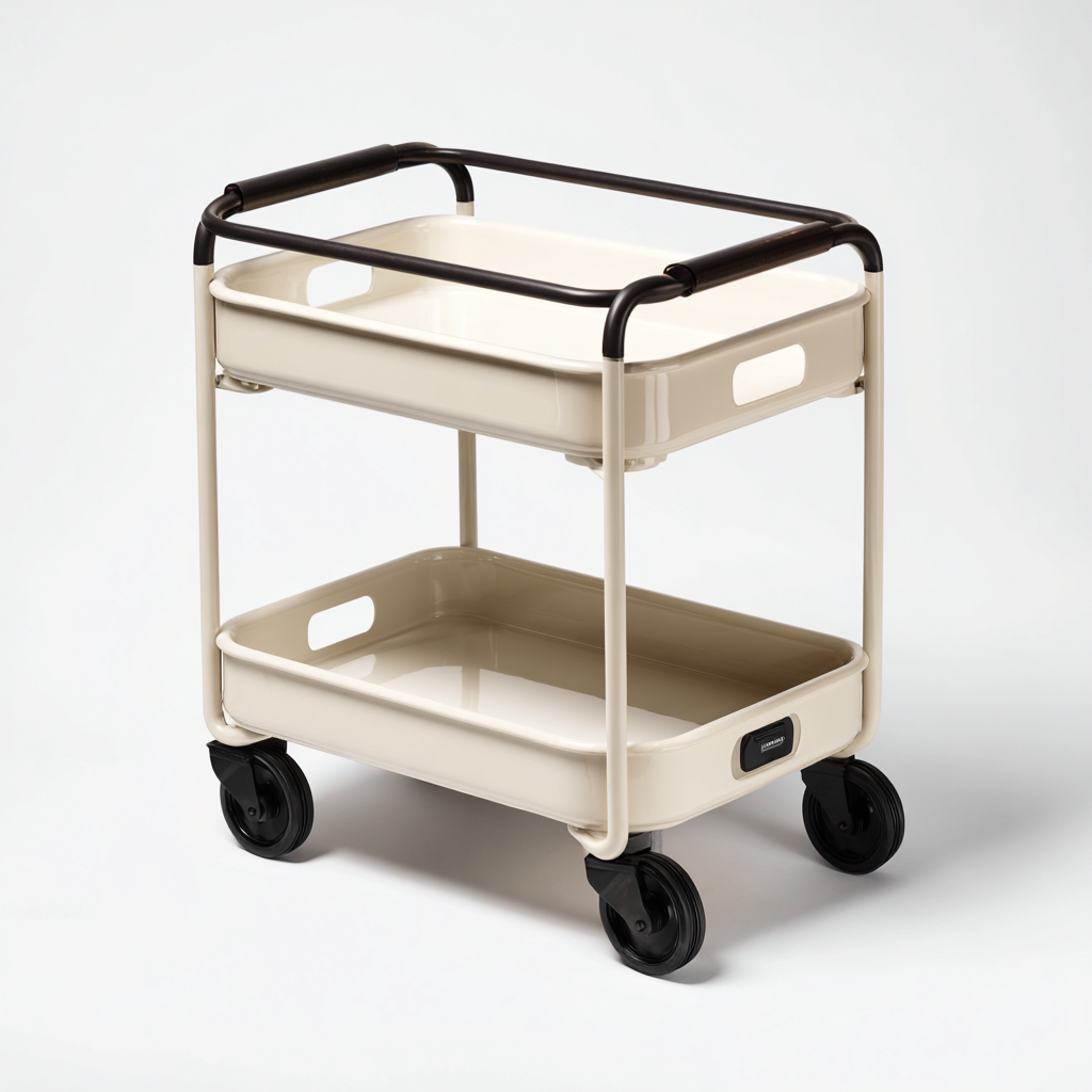 Fabricado en metal resistente con un acabado en color crema, combina durabilidad con un aspecto limpio y moderno. Las bandejas metálicas ofrecen buena capacidad de carga, mientras que las asas en tono oscuro aportan un contraste visual atractivo.