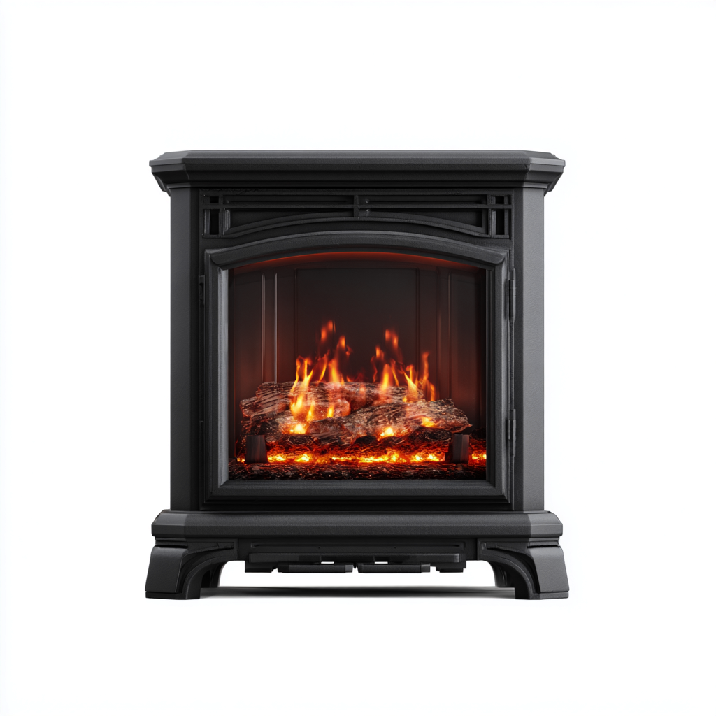 Incluye un efecto de llama con troncos simulados que aporta un toque decorativo sin emitir calor real. Su diseño estable y frontal amplio lo hace adecuado para colocarlo en muebles bajos, rincones decorativos o zonas destacadas del salón.