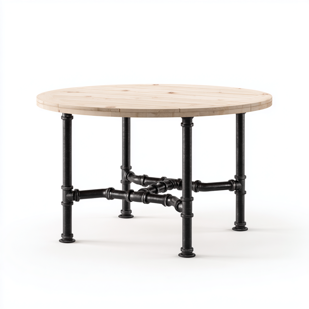 El diseño industrial aporta personalidad y firmeza. La estructura metálica reforzada en la parte inferior mejora la estabilidad, mientras que el tablero redondo permite un uso cómodo y versátil. Ideal para espacios exteriores cubiertos o zonas ajardinadas.